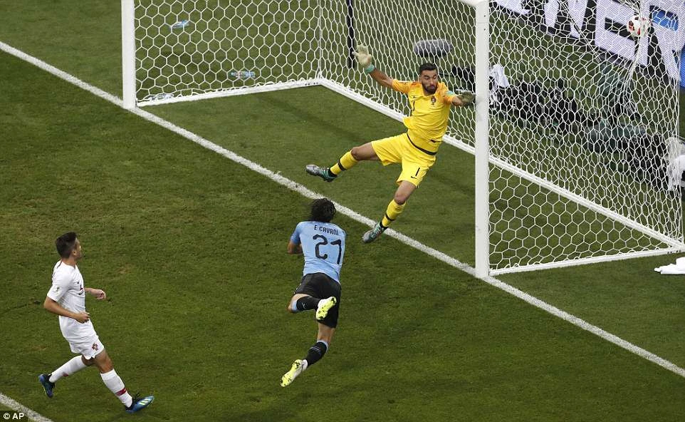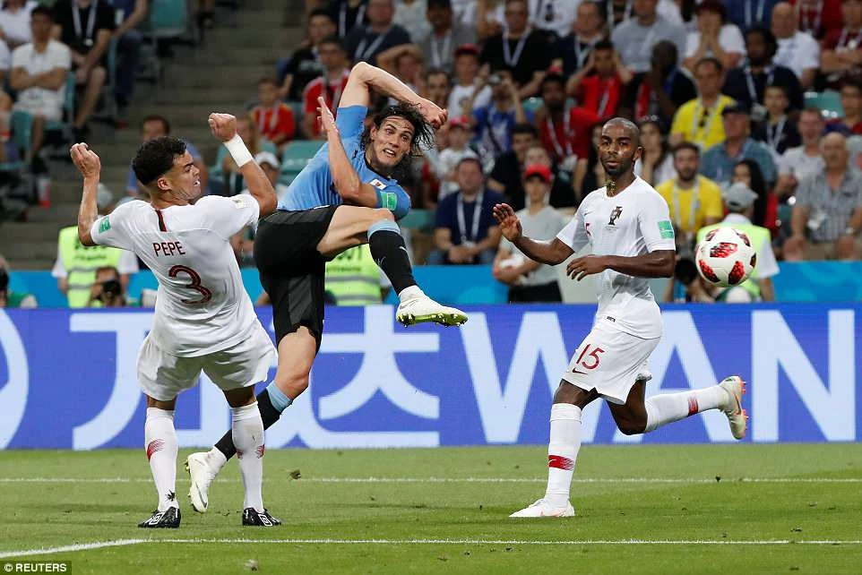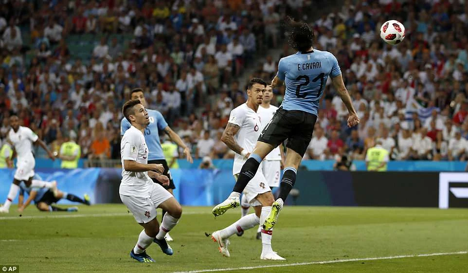 Ngay lập tức, phút 62, tận dụng sai lầm phá bóng hỏng của hàng thủ Bồ Đào Nha, Cavani lại một lần nữa trừng phạt đối thủ bằng pha cứa lòng một chạm đẳng cấp vào góc xa nâng tỉ số lên 2-1 cho Uruguay.