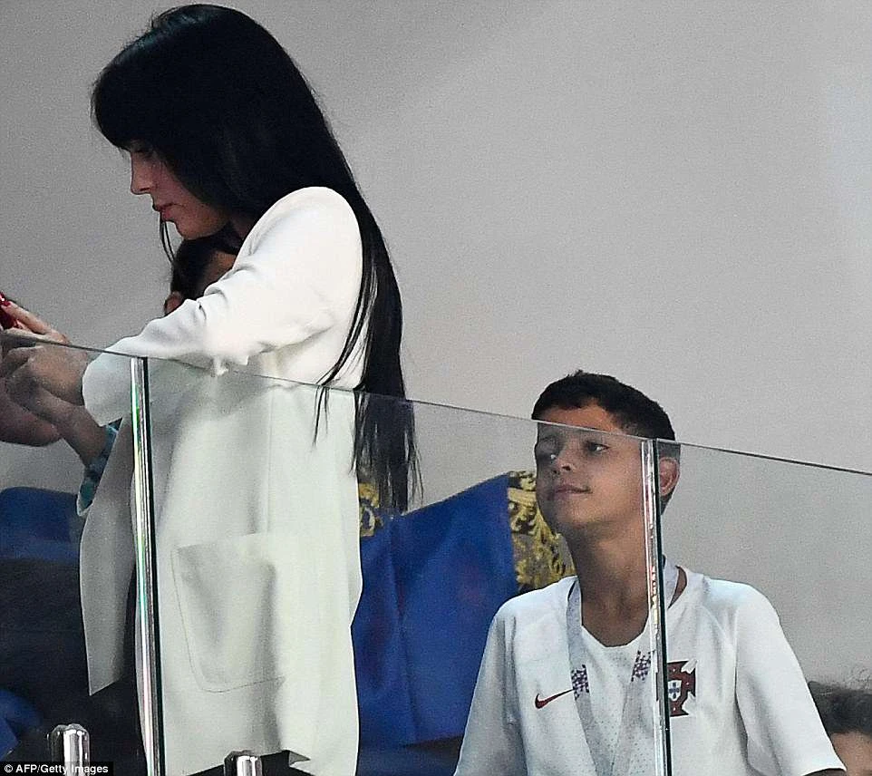 Con trai của Ronaldo, Cristiano Jnr đứng trên khán đài VIP cổ vũ cha mình.