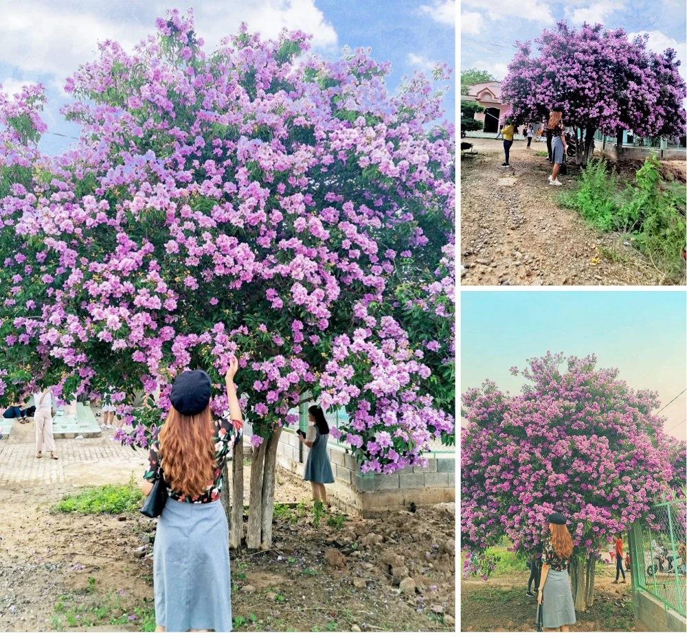 Cây bằng lăng tím khổng lồ nở hoa rực rỡ tại xã Hồng Liêm, huyện Hàm Thuận Bắc, tỉnh Bình Thuận.