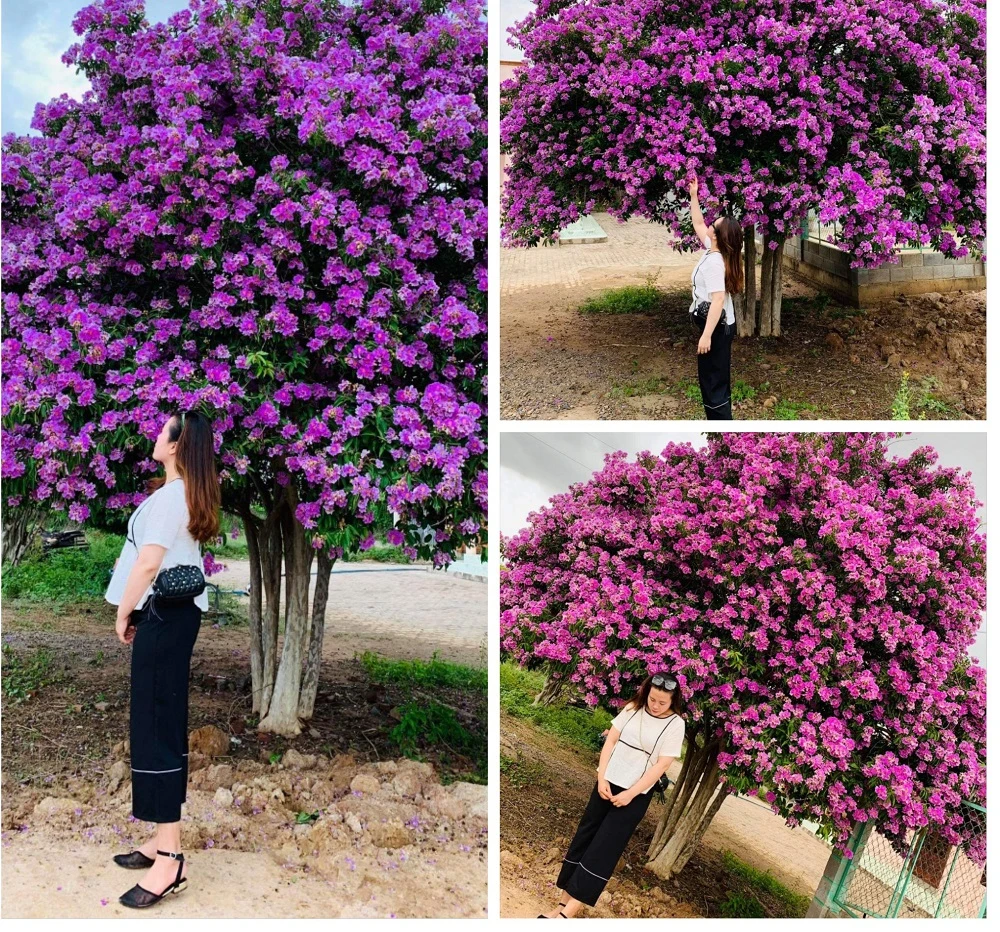Không bỏ lỡ cơ hội, chị Trần Thị Xuân, nhà ở xã Hồng Liêm, huyện Hàm Thuận Bắc đã tranh thủ ngày nghỉ đến chụp hình cùng với cây hoa được cho là “cây bằng lăng đẹp nhất Việt Nam”.