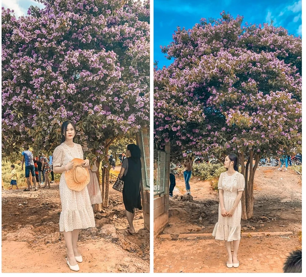 Cây bằng lăng tím cao khoảng 4 m, đơm hoa đầy tán. Mỗi năm đến dịp này lại có rất đông người dân đến đây chụp ảnh, đặc biệt là các bạn trẻ. Cánh hoa tím nhẹ nhàng đan xen màu trắng đằm thắm đầy quyến rũ của hoa bằng lăng mang một nét duyên thầm khiến ai cũng nao lòng.