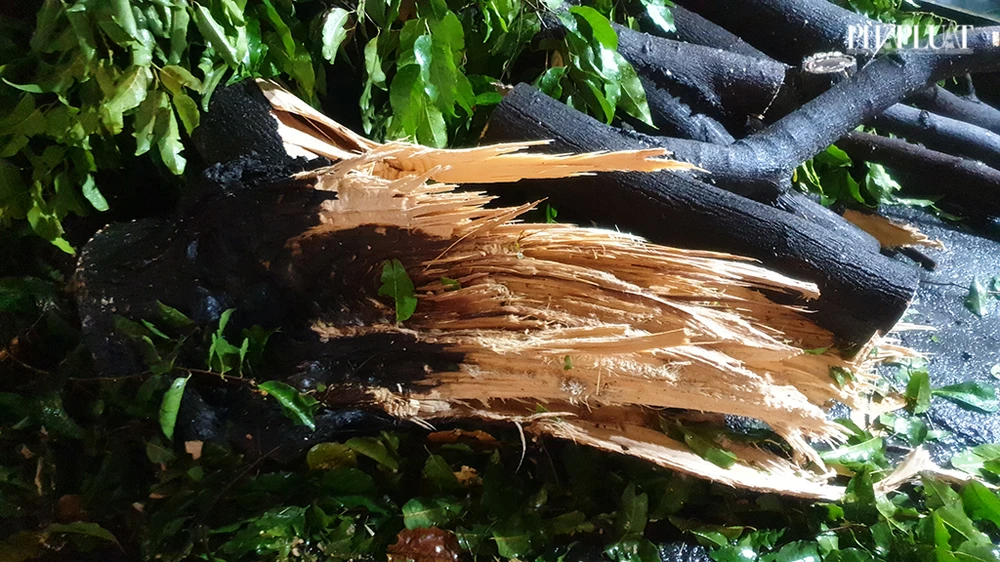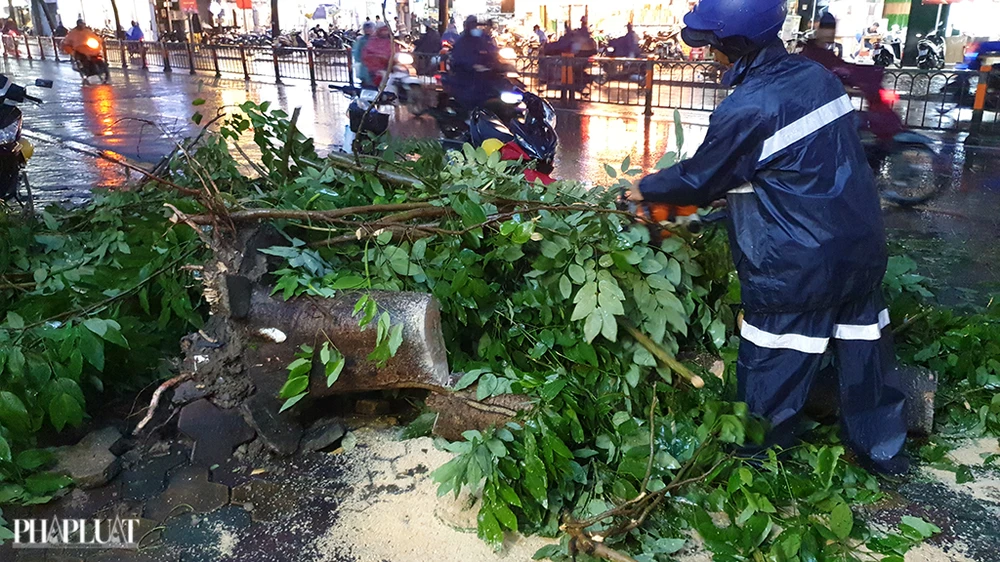 Hiện trường các vụ cây bật gốc, gãy sau đó được lực lượng chức năng xử lý nhanh chóng.