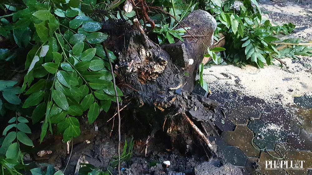 Cây xanh trồng đã nhiều năm, đường kính gốc hơn 25cm sau đó được lực lượng chức năng dọn dẹp. Ảnh NT