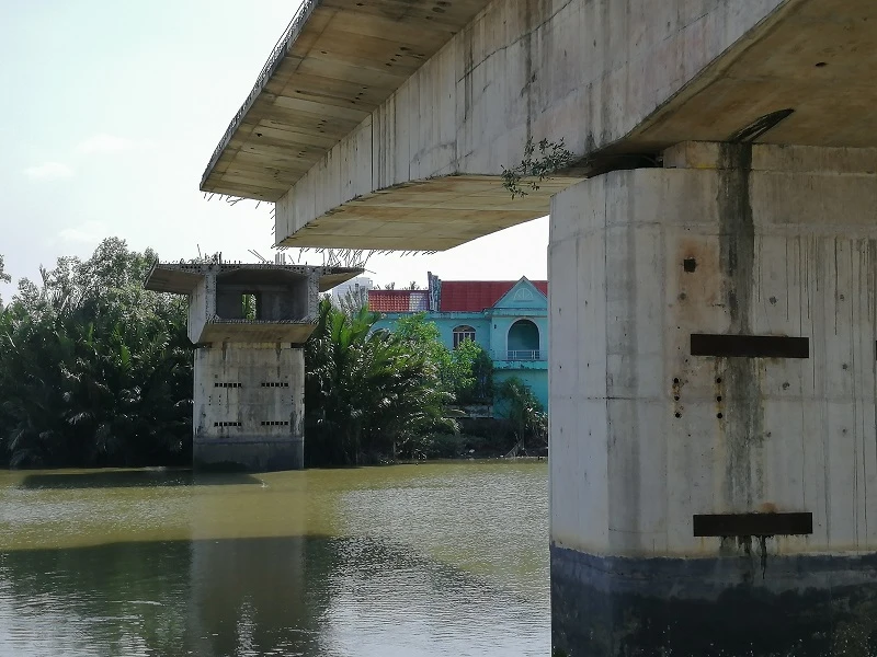 Một phần dang dở chưa nối được đường dẫn bờ (xã Phước Lộc).