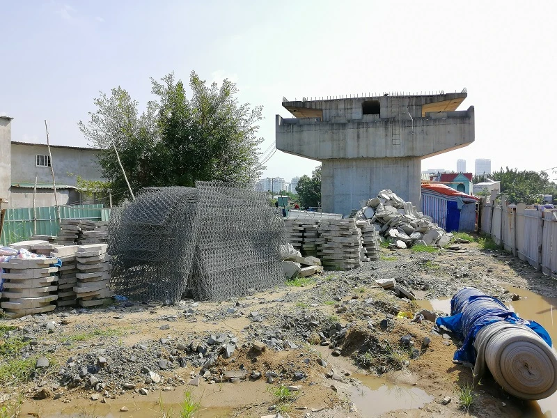 Công nhân của công trình xây dựng bờ kè dưới cầu.