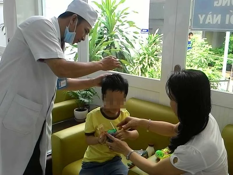 “Đầu con có nhiều chí quá, để bác bắt cho con nhé!” - vừa nói BS Văn Công Viên, Phó Trưởng khoa Khám Viện Y dược học dân tộc TP.HCM, vừa nói vừa đưa kim lên châm cứu cho bé X. trong khi bé vừa ăn bánh vừa chơi với mẹ.