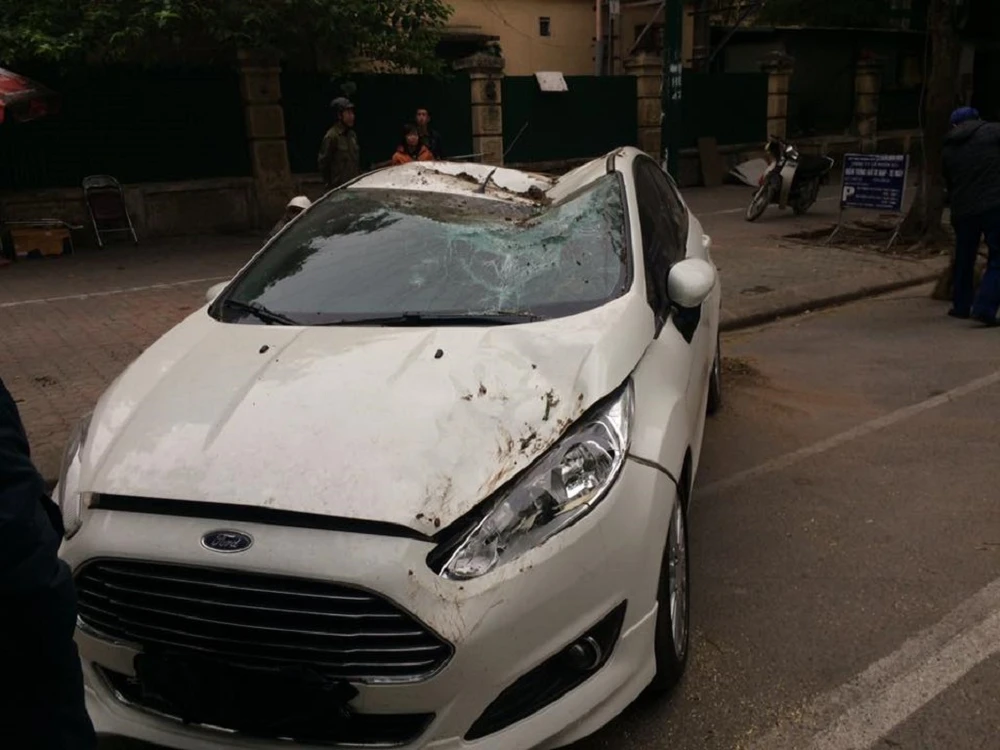 Chiếc ô tô bất ngờ bị cây phượng đè trúng.