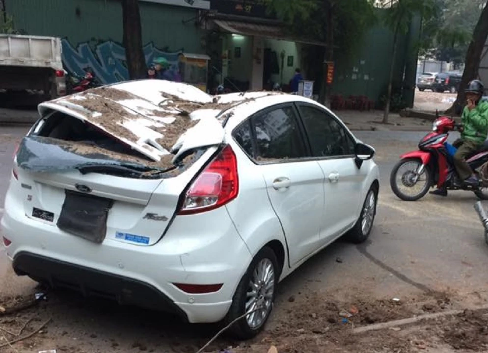 Sự việc xảy ra khoảng 5 giờ sáng nay (21-1) trên đường Lý Thường Kiệt (Hà Nội). Vào thời điểm trên, một cây phượng bỗng dưng bật gốc, đổ ngang ra đường, đè lên một chiếc ô tô màu trắng đang dừng bên lề đường. Hậu quả vụ việc khiến chiếc ô tô bị hư hỏng và móp méo phần nóc.