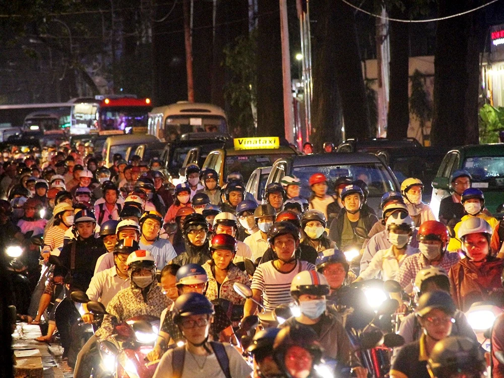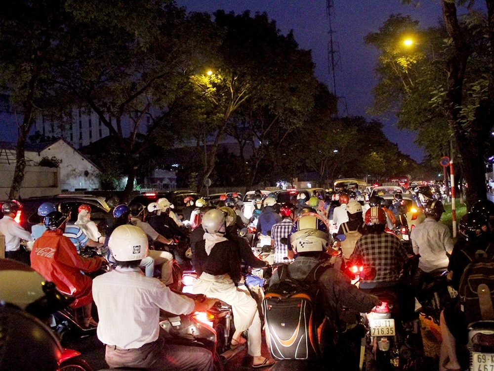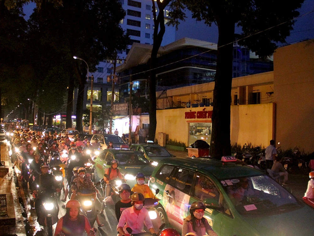 Do vào giờ cao điểm nên mật độ phương tiện tăng cao, ùn ứ kéo dài.