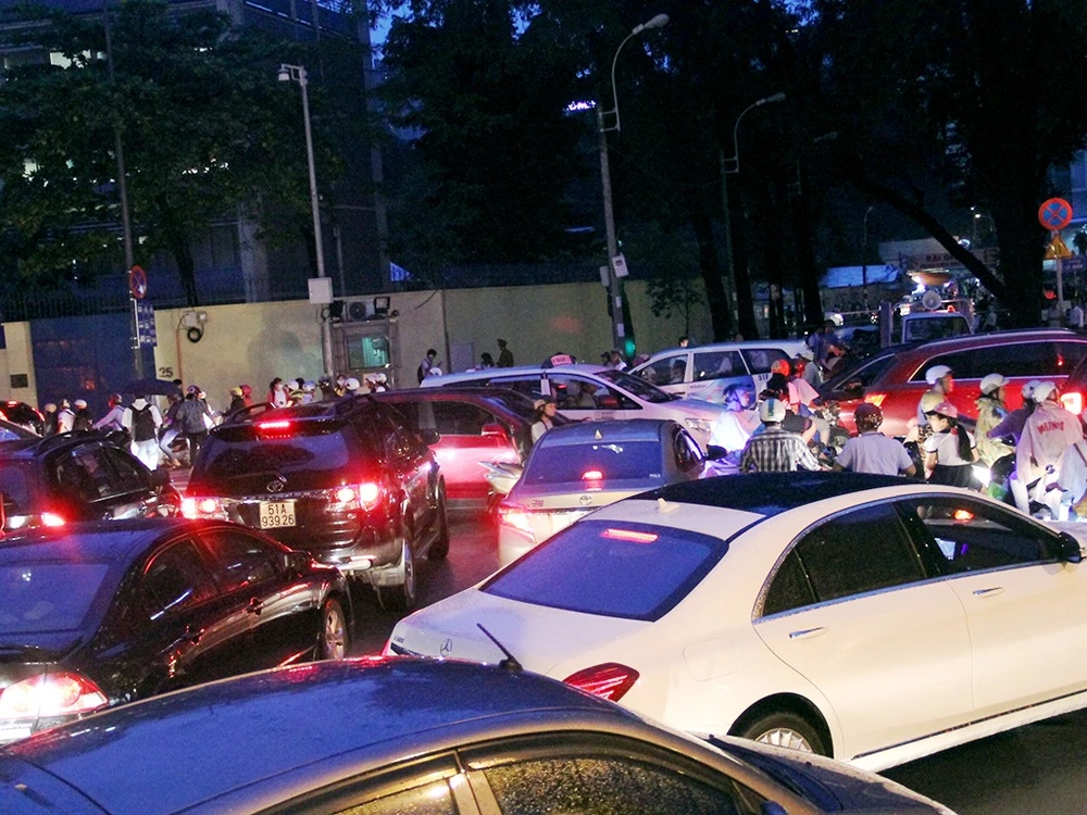 Giao thông ở giao lộ Mạc Đĩnh Chi - Lê Duẩn khá hỗn loạn do bị phong tỏa nhiều giờ.