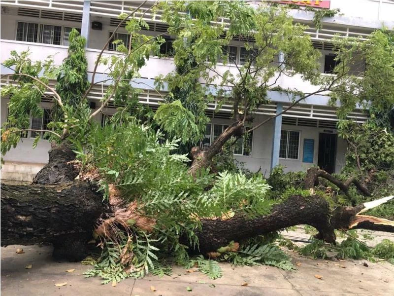 Lãnh đạo nhà trường cho biết: Vào chiều 26-11, cây cổ thụ trong sân trường bất ngờ ngã kéo theo cột điện ngã gãy khiến toàn bộ hệ thống dây điện của trường bị hư hỏng.