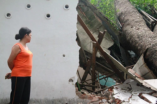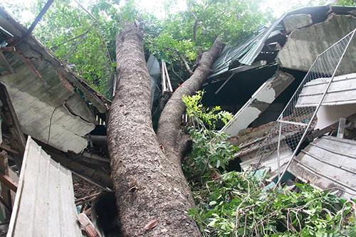 Cây xà cừ lớn đổ xuống đè sập Cung văn hóa Lao Động sáng sớm ngày 15-9.
