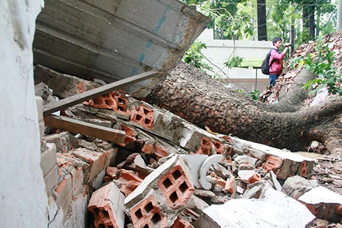 Vụ việc xảy ra vào khoảng 6 giờ 20 phút sáng ngày 15-9, một cây xà cừ lớn, cao hàng chục mét, đã đổ sập xuống, đè nát một góc Cung văn hóa Lao Động ở Công viên Tao Đàn.
