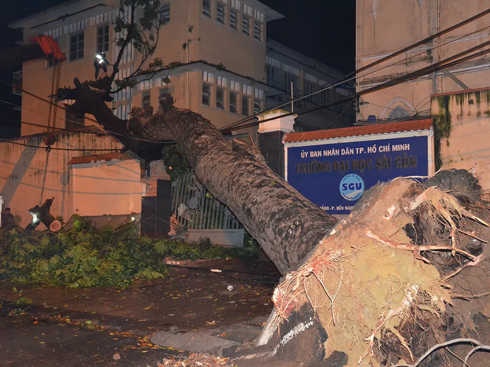 Nguyên nhân ban đầu được xác định có thể là do trong những ngày qua trên địa bàn TP.HCM xuất hiện nhiều cơn mưa lớn nên nước ứ đọng, làm kết cấu phần đất bên dưới rời rạc khiến cây bật gốc.