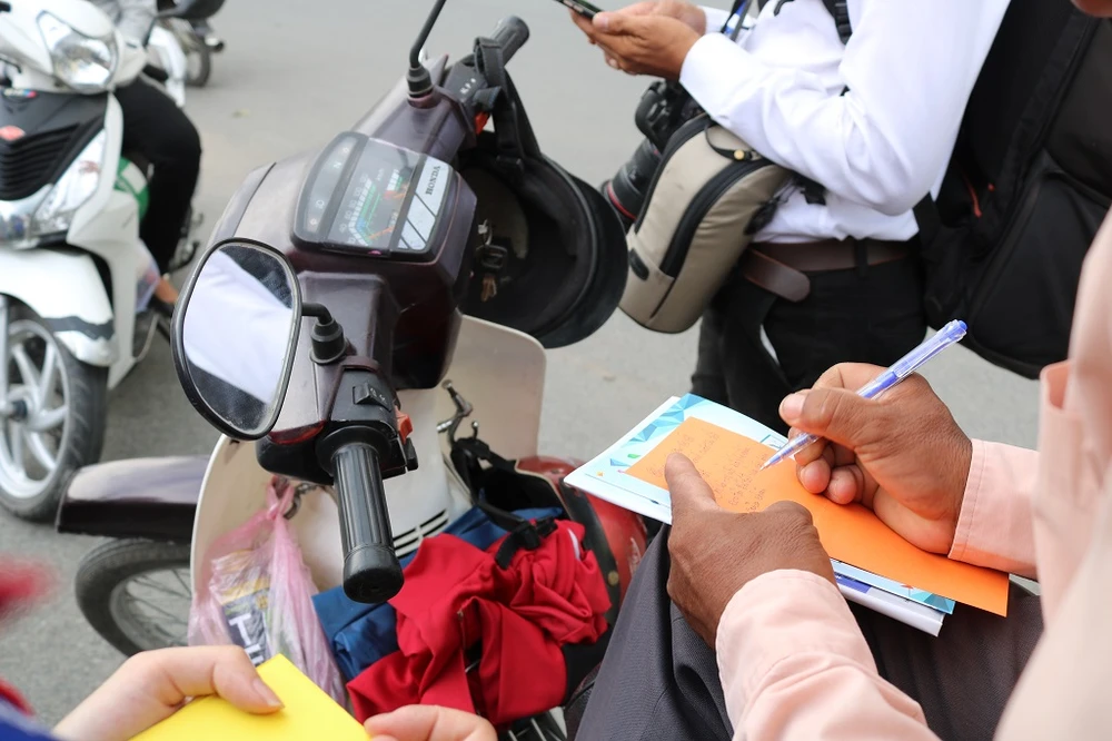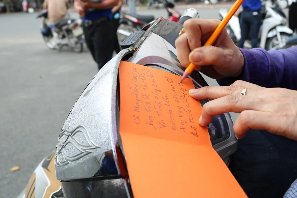 Phụ huynh viết lời chúc gửi đến con và tất cả các thí sinh đang dự thi. Ảnh: THỦY TRÚC