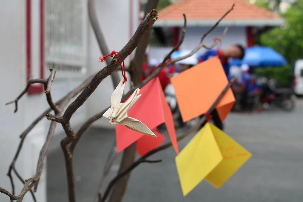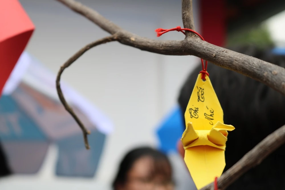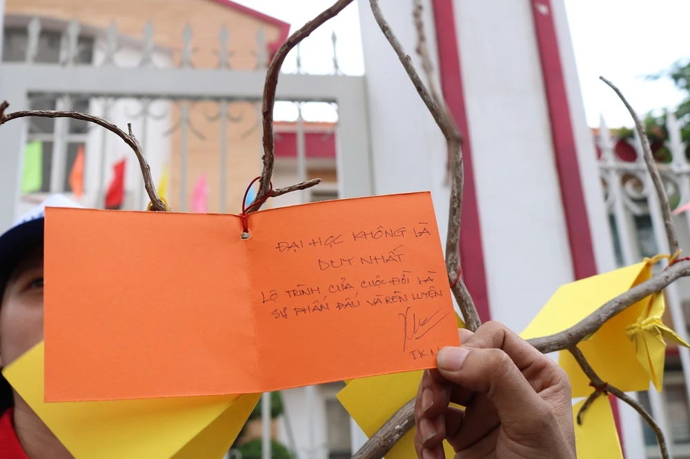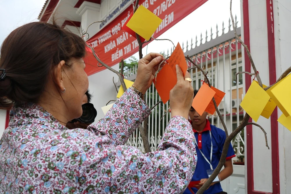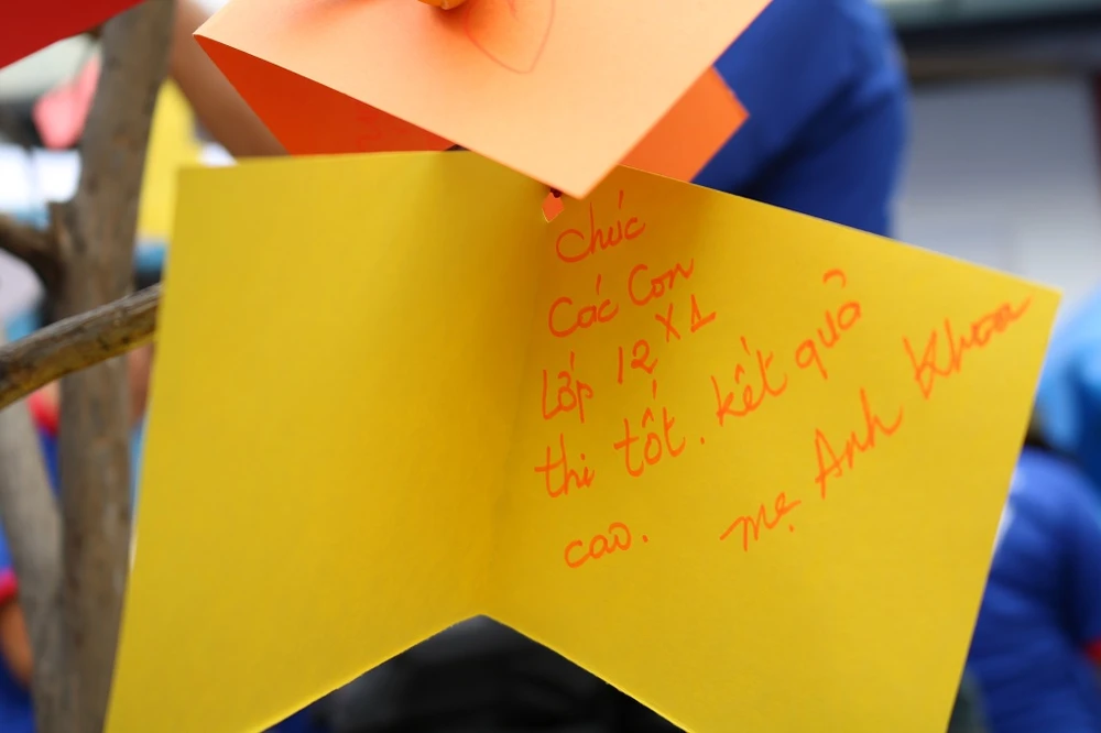“Cây điều ước” sẽ được các bạn tình nguyện viên giữ đến ngày thi cuối cùng để có thể giúp bày tỏ, kết nối thêm được tình cảm từ cha mẹ, người nhà đến các thí sinh. Ảnh: THỦY TRÚC