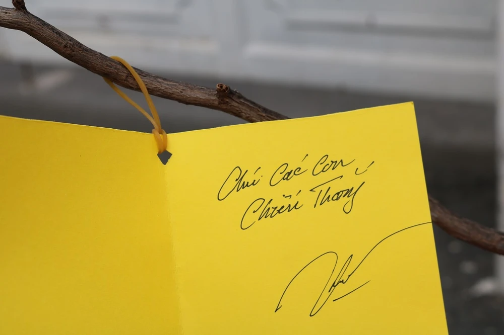 “Cô treo lời chúc lên cao, để con cô đậu cao” - một vị phụ huynh vui vẻ chia sẻ. Ảnh: THỦY TRÚC