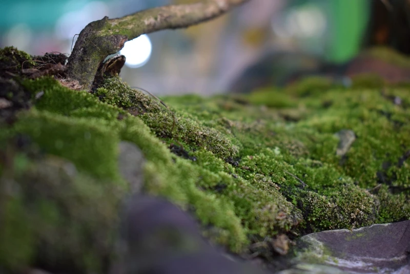 Phía dưới là một lớp rêu xanh cổ kính.