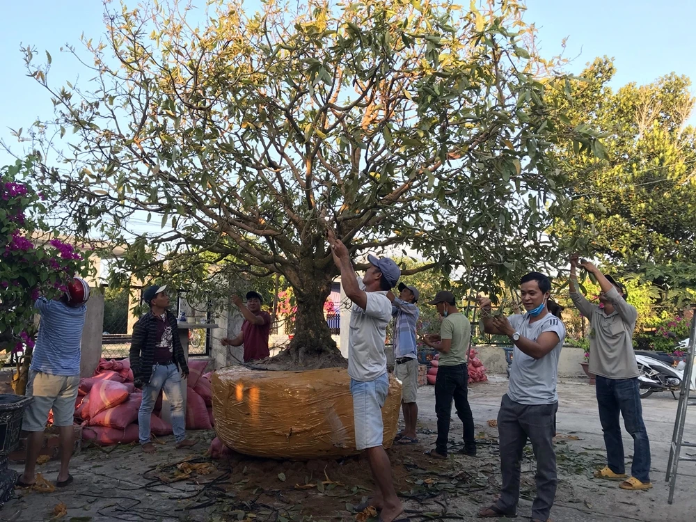 Cây mai cổ thụ chuẩn bị đưa đi dự Hội hoa xuân Tao Đàn.