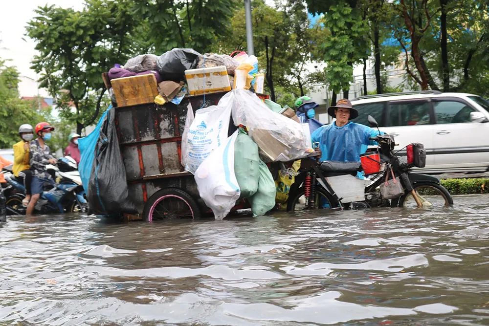 Tại quận Bình Thạnh, nhiều tuyến đường rơi vào ngập úng, đặc biệt là đường Nguyễn Hữu Cảnh.
