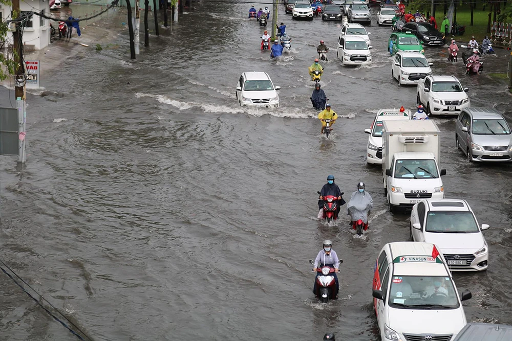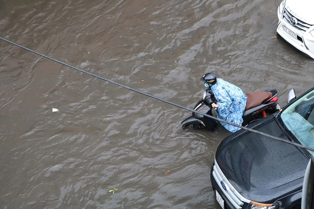 Trong ngày, ảnh hưởng mưa lớn khiến nhiều tuyến đường ở TP.HCM bị ngập. Ảnh HT