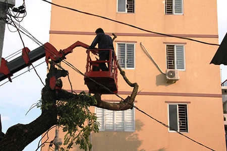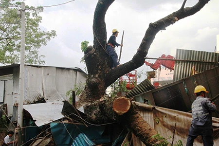 Sau khi vụ việc xảy ra, công nhân Công ty cây xanh phối hợp với nhân viên điện lực và lực lượng sở tại đã giải phóng hiện trường, điều tiết giao thông tránh ùn tắc.