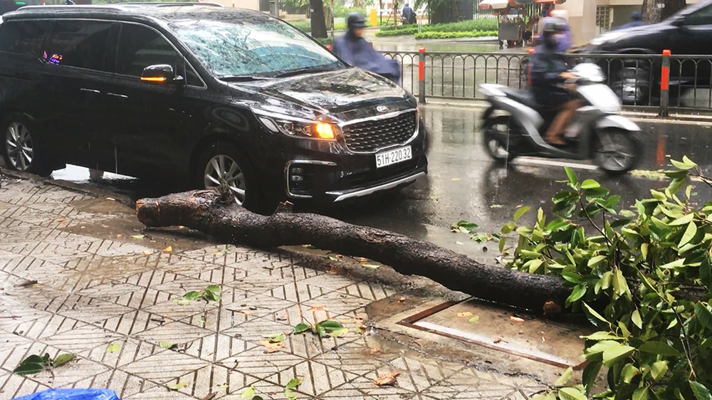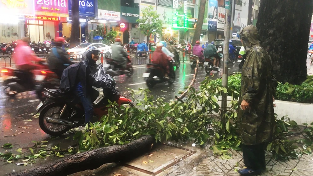 Trong lúc đó, tại đường Lê Duẩn (quận 1), cũng xảy ra vụ ngã đổ cây xanh, tuy nhiên may mắn không có ai bị thương.