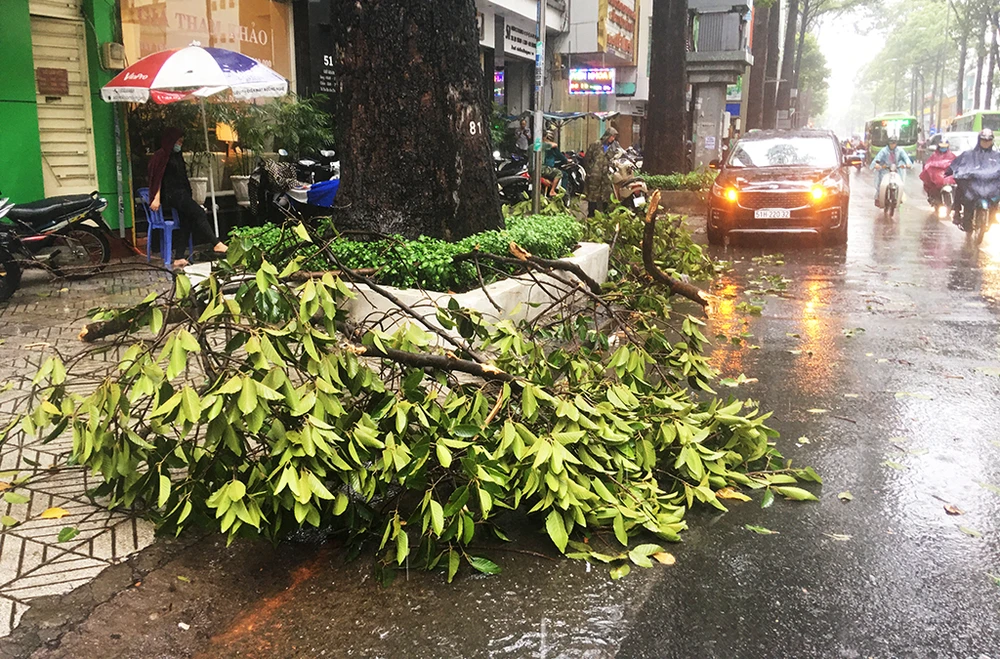 Trong chiều cùng ngày, tại nhiều khu vực tại TP.HCM cũng xuất hiện tình trạng cây ngã, tét nhánh. Ảnh HT.