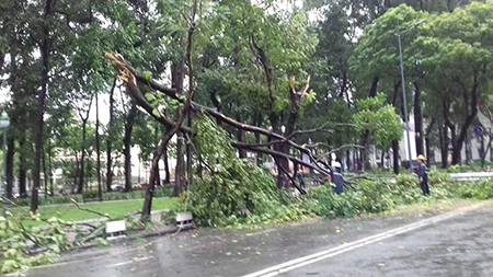 Cùng thời gian trên một cây lim sẹc trên đường Lê Duẩn, trước cửa Lãnh sự quán Hoa Kỳ tại TP. HCM cũng bị mưa, gió giật gãy nhánh rớt ra đường.