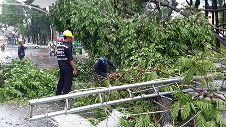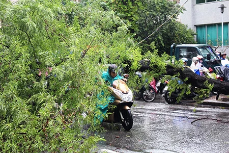 Các vụ gãy nhánh cây, ngã giá long môn trên không gây thiệt hại cho người và xe đi đường.