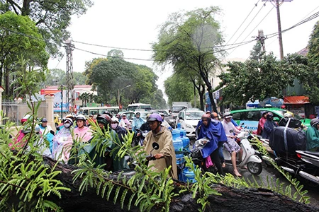 Bà Huỳnh Thị Tuyết (người nhìn thấy cây đổ) cho biết, trời vừa bắt đầu mưa khoảng 5 phút thì cây đã bật gốc và đổ xuống đường. Người lái xe ba gác không tránh kịp nên đã bị thương nặng. Vụ việc gây ùn tắc giao thông trong khoảng một giờ liền.