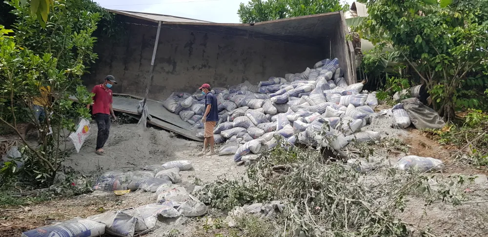 Hơn 20 tấn xi măng bị văng ra ngoài, bể nát.