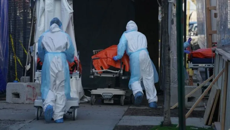 Các nhân viên y tế Mỹ đang di chuyển thi thể của bệnh nhân nhiễm COVID-19. Ảnh: CITIZEN TV