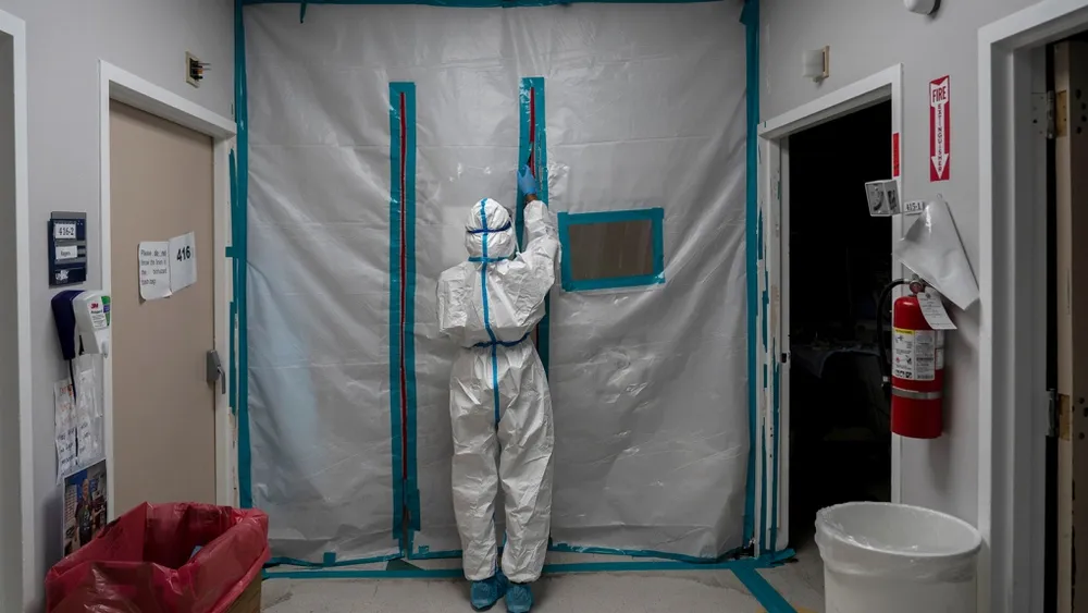 Một nhân viên y tế rời khỏi phòng chăm sóc đặc biệt vào ngày đầu năm mới tại Trung tâm Y tế United Memorial ở Houston, Texas. Ảnh: GETTY IMAGES