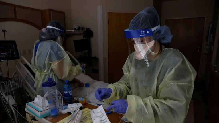 Các nhân viên y tế Mỹ mặc đồ bảo hộ để phòng chống nguy cơ lây nhiễm bệnh nấm. Ảnh: RT