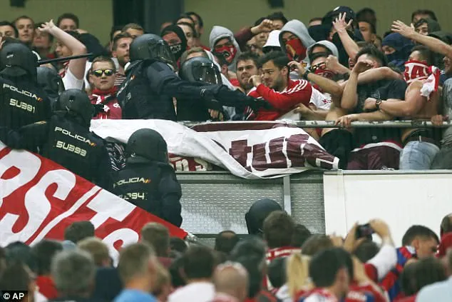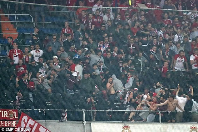 Cảnh sát trấn áp các CĐV Bayern gây rối.