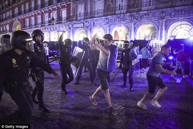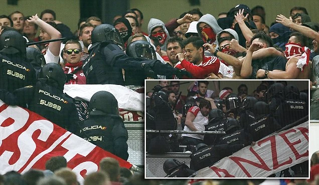 Tuần trước tại Madrid, cũng xảy ra vụ “đụng độ” giữa cảnh sát và người hâm mộ CLB Leicester City khi nhà vô địch nước Anh đến làm khách gặp Atletico Madrid trong trận tứ kết lượt đi Champions League.