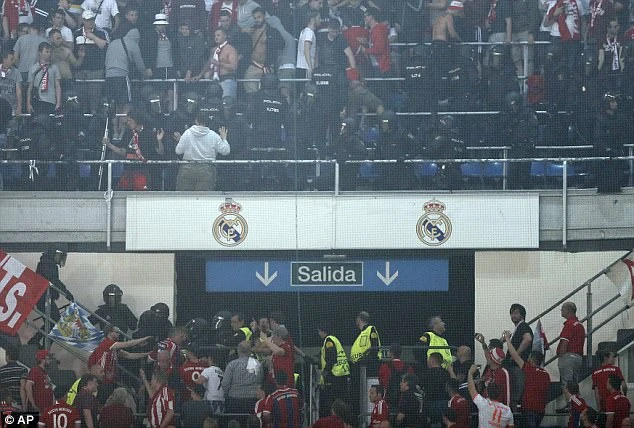 Vụ việc bắt đầu vào khoảng thời gian nghỉ giữa hai hiệp, lúc này tỉ số vẫn là 0-0. Cảnh sát Tây Ban Nha được huy động để xử lý một nhóm các CĐV Bayern Munich trên khán đài. Nguyên nhân được cho là có những tranh cãi về lá cờ và biểu ngữ treo trên sân của CĐV Bayern Munich.