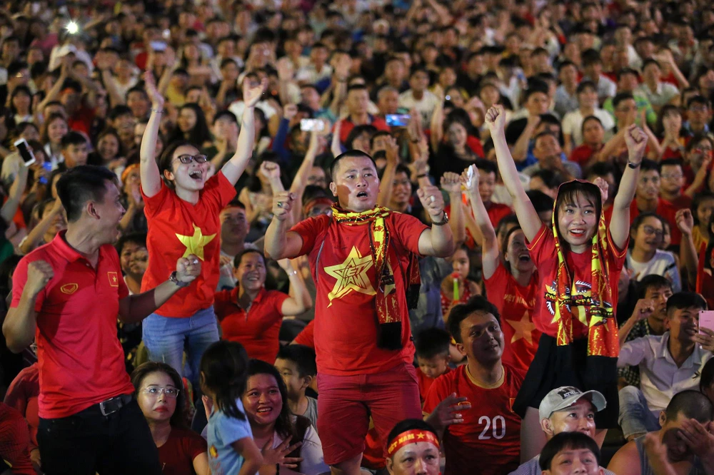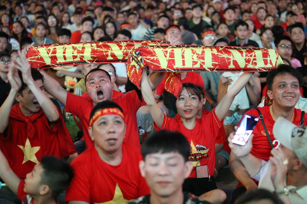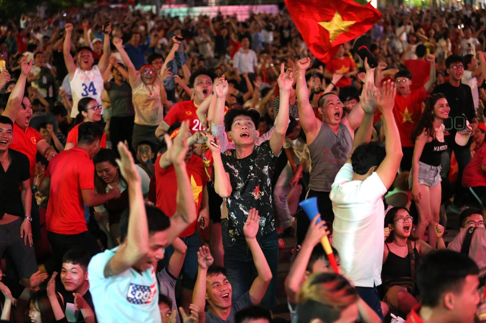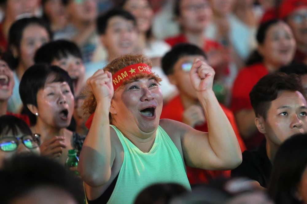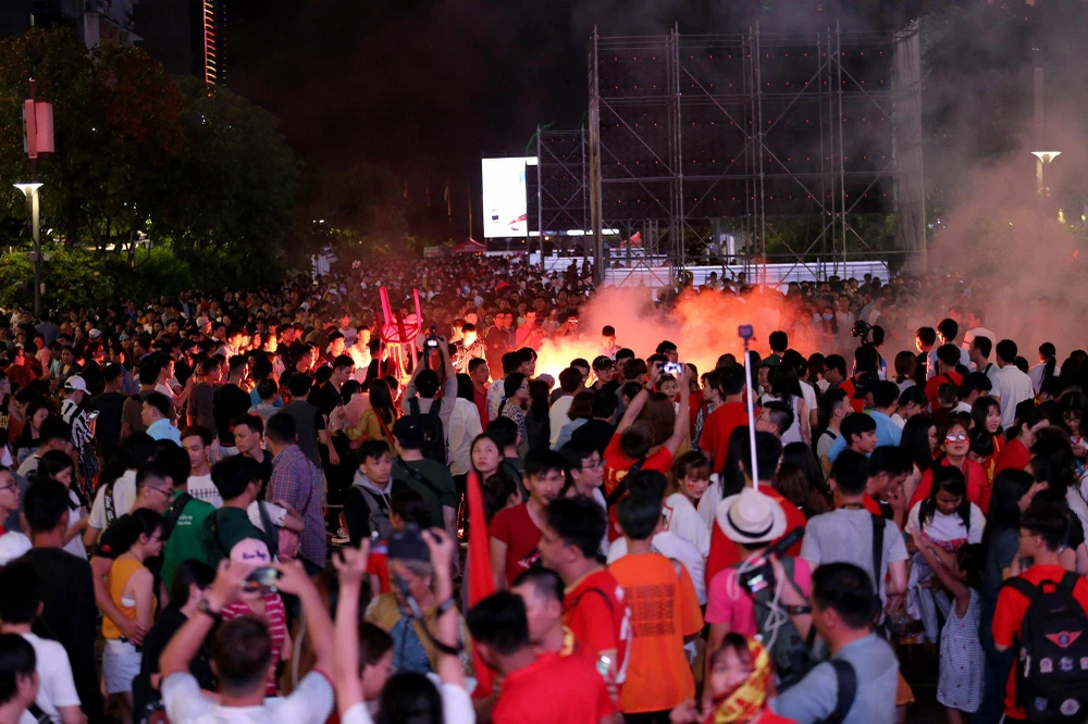 Phố đi bộ Nguyễn Huệ gần như không còn chỗ trống từ khi trận đấu bắt đầu.