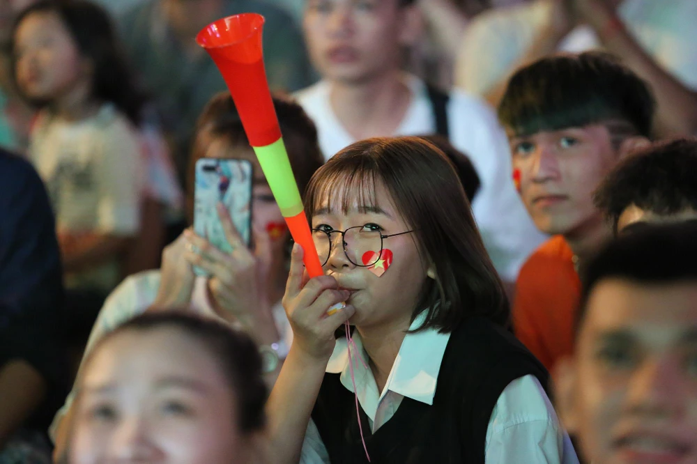 Tiếng hò reo cổ vũ của các cổ động viên vang lên từng hồi khi đội tuyển chơi áp đảo đội bạn trong hiệp 1.