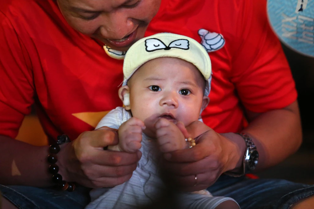 Cổ động viên nhỏ tuổi nhất cũng đến phố đi bộ cổ vũ đội tuyển.