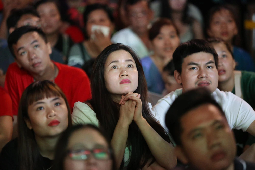 Sự hồi hộp trên từng gương mặt các cổ động viên.