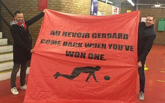 Kèm theo đó là dòng chữ “Tạm biệt Gerrard, trở lại khi nào bạn giành được 1 danh hiệu (Premier League)’’.