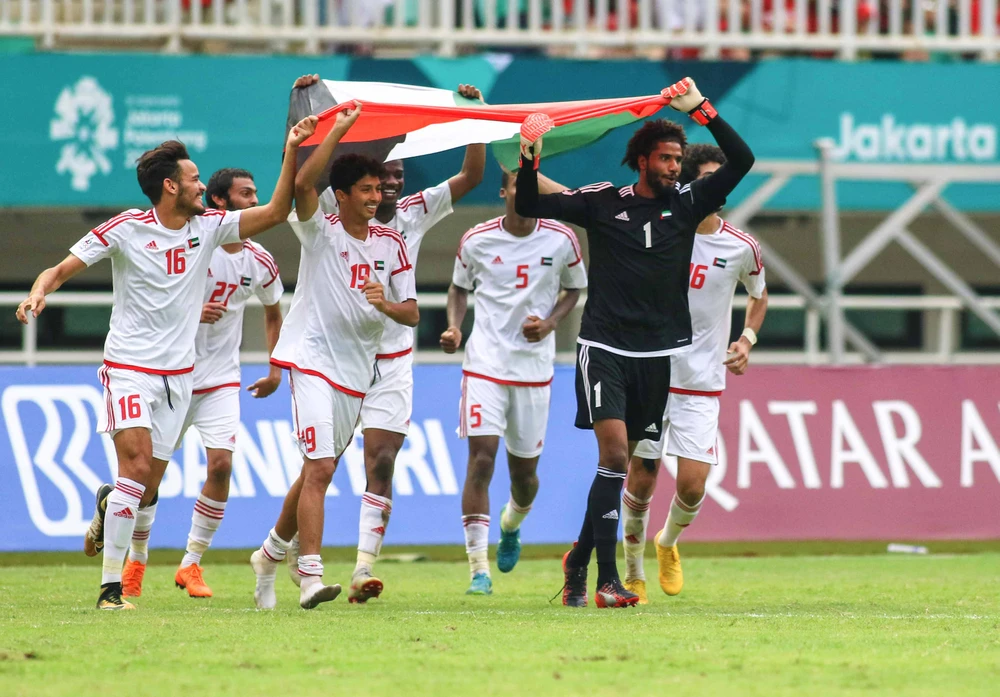 Các cầu thủ UAE vui mừng sau khi giành chiến thắng trước Olympic Việt Nam.