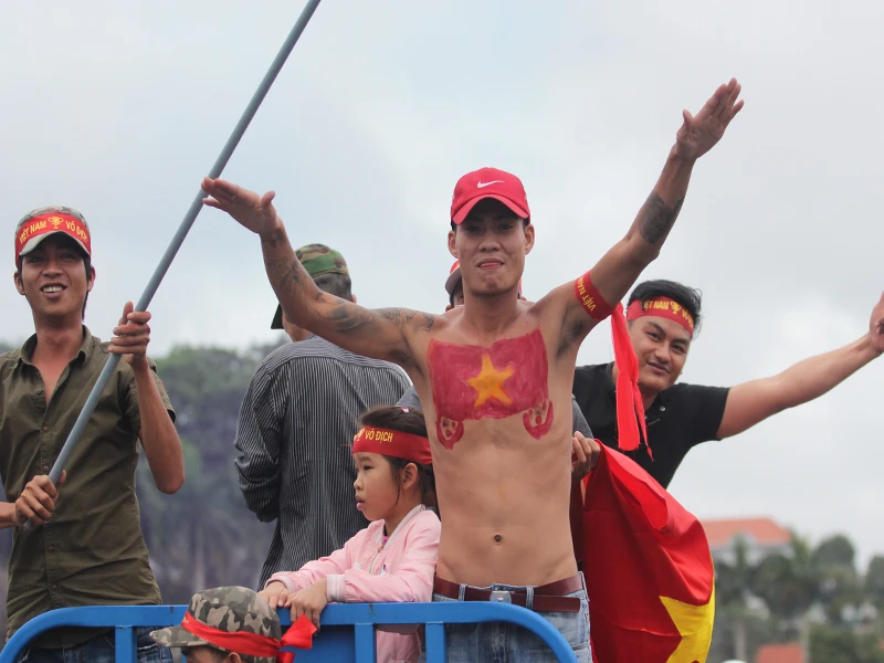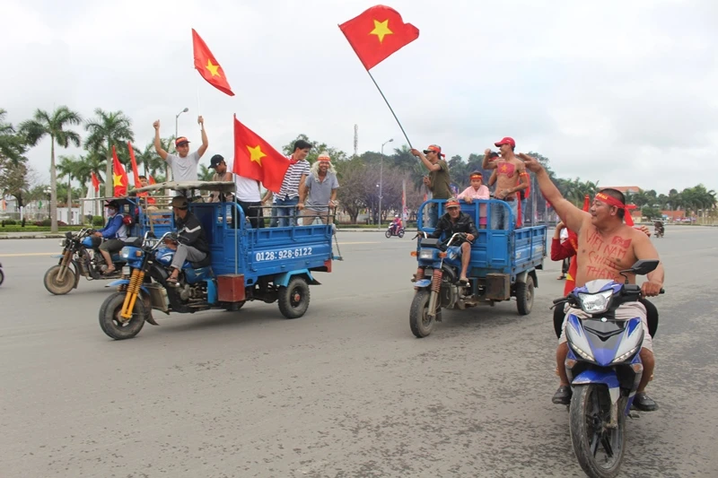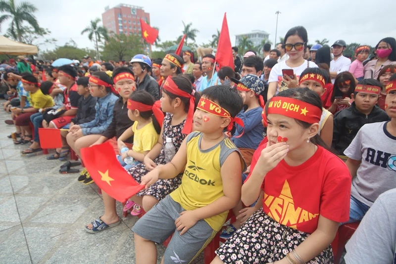 Từ sáng sớm, nhiều người dân đã tập trung tại quảng trường TP Tam Kỳ (Quảng Nam) để cùng nhau cổ vũ tinh thần cho đội tuyển U-23 Việt Nam.
