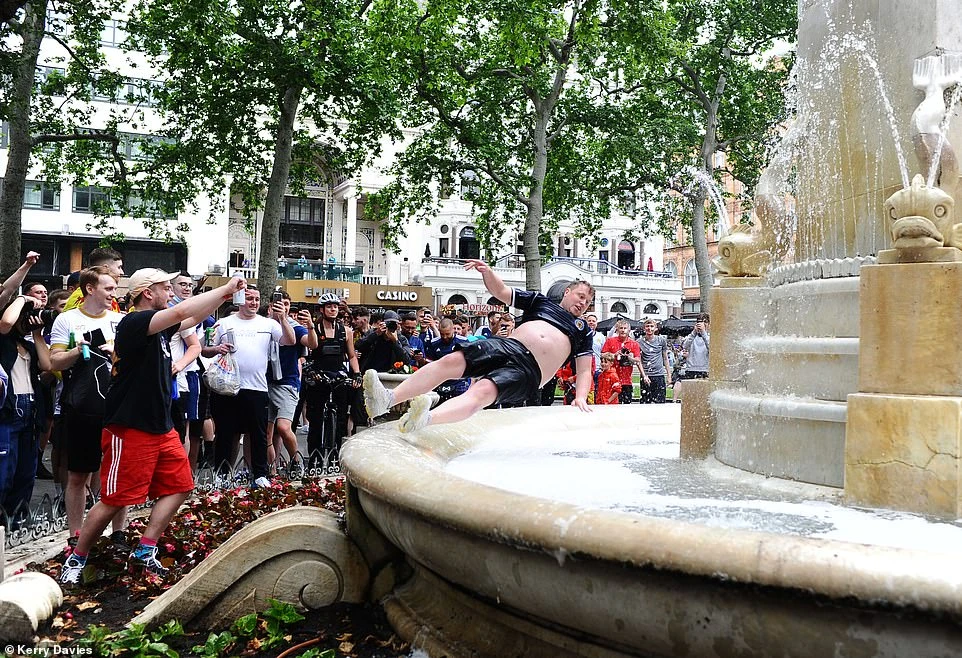 Có khoảng 20.000 NHM không có vé vào sân, mang theo cờ Scotland tràn đến trung tâm thủ đô và cùng hô vang khẩu hiệu “chúng tôi ghét nước Anh”. Không chỉ bạo loạn ở trung tâm thủ đô London, mà nhóm người quá khích ủng hộ Scotland còn quấy rối tại thành phố Leicester, khi nhóm người này đã nhảy xuống đài phun nước William Shakespare ở quảng trường thành phố.