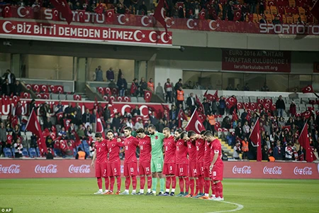 Các cầu thủ Thổ Nhĩ Kỳ trong phút mặc niệm nạn nhân vụ khủng bố Paris