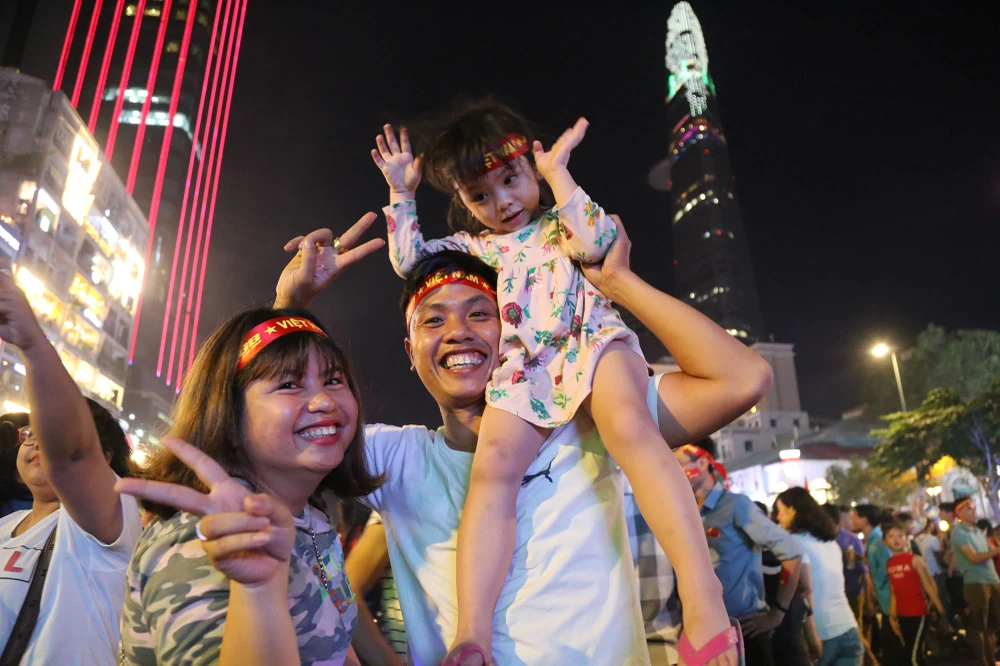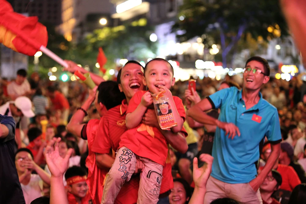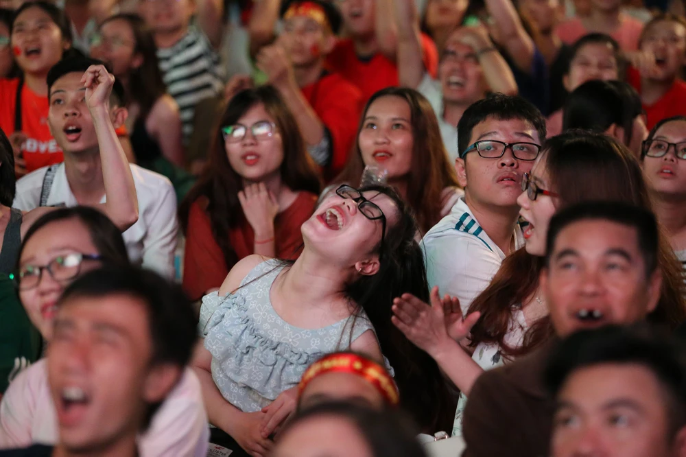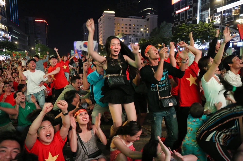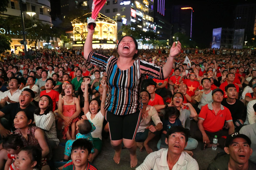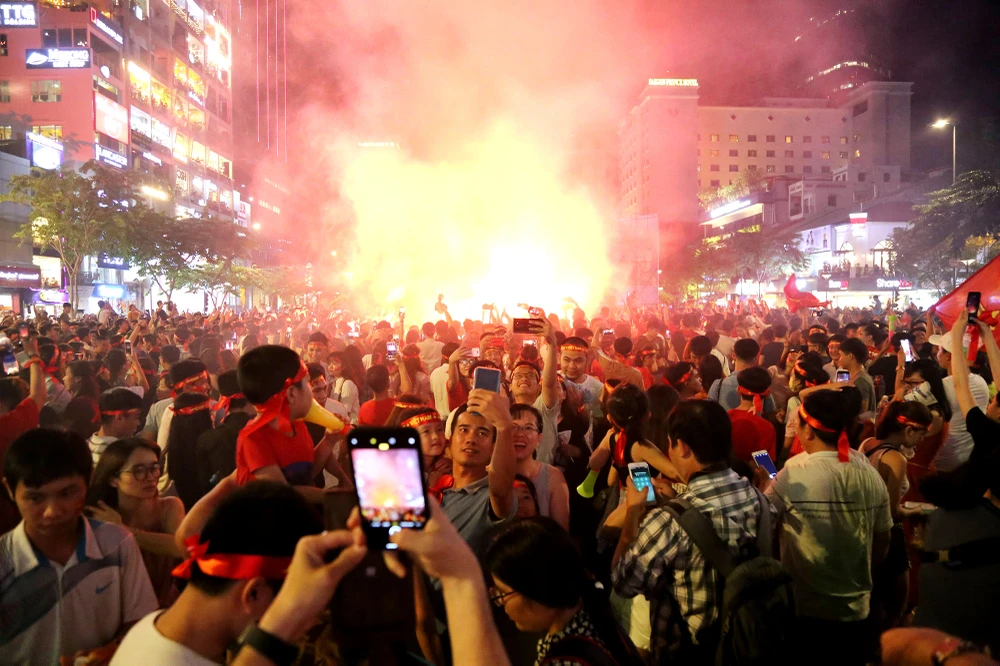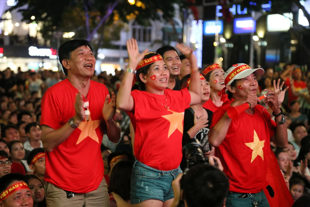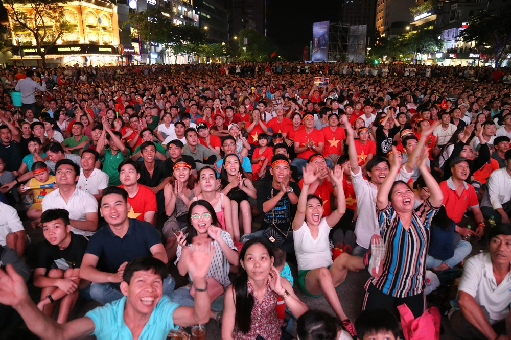 Phố đi bộ chật kín cổ động viên tiếp lửa cho đội tuyển VN.