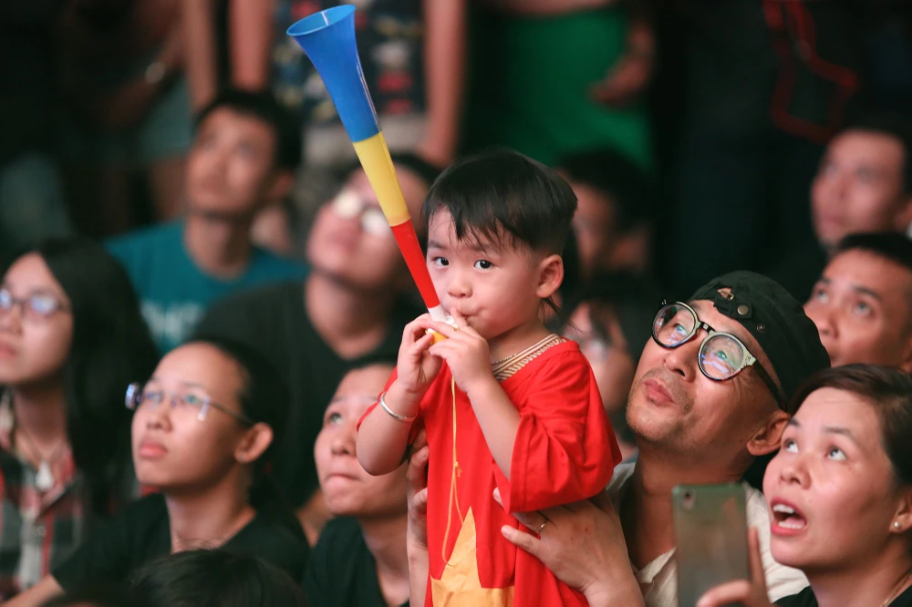 Em nhỏ hào hứng khi xem màn trình diễn của đội tuyển VN.
