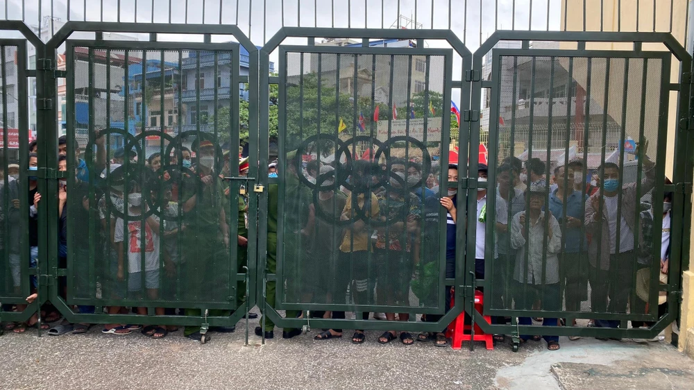 Các CĐV chờ đợi trước cổng để được vào sân. |